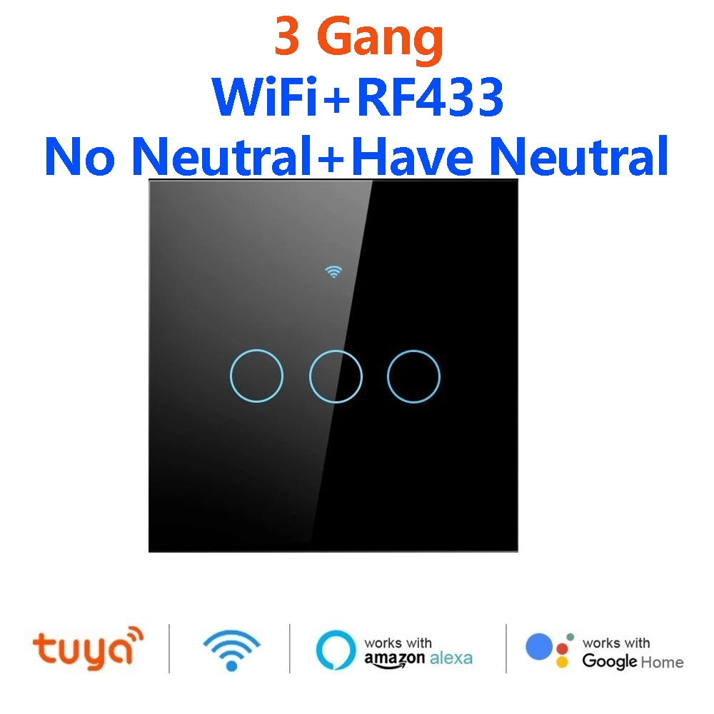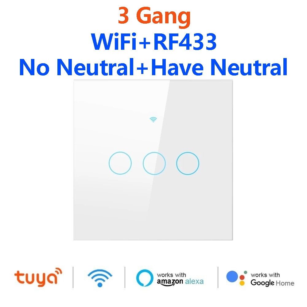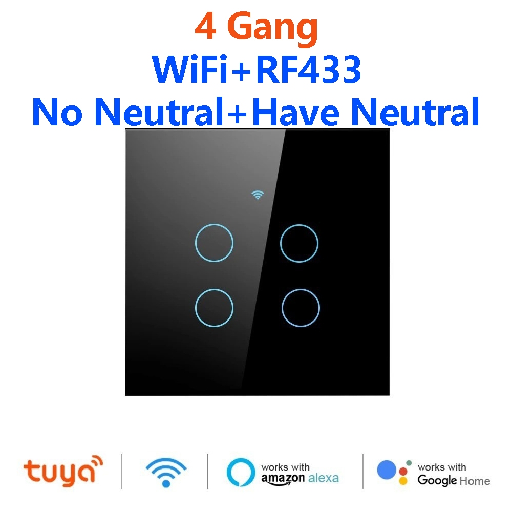 TUYA WiFi Smart Switch Light Touch 1/2/3/4 Gang Switch Without No Neutral Wire for Alexa Google Home