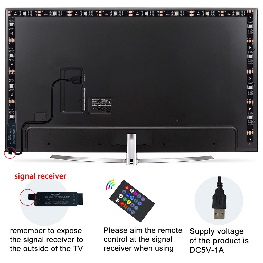 TV LED BacklightsMMusic Sync LED Strip Light with Remote RGB 5050 LED Strip for PC Desk, TV Backlights, Home Decoration