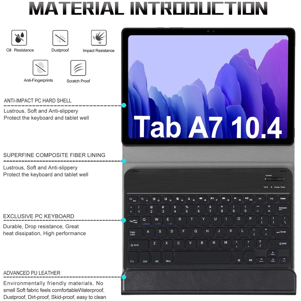 TYD For Samsung Galaxy Tab A7 10.4" Keyboard Case 2020 Release, PU Leather Stand Cover with Magnetically Detachable Wireless Keyboard for Galaxy Tab A7 (10.4-Inch, SM-T500/T505/T505N/T507) - Black