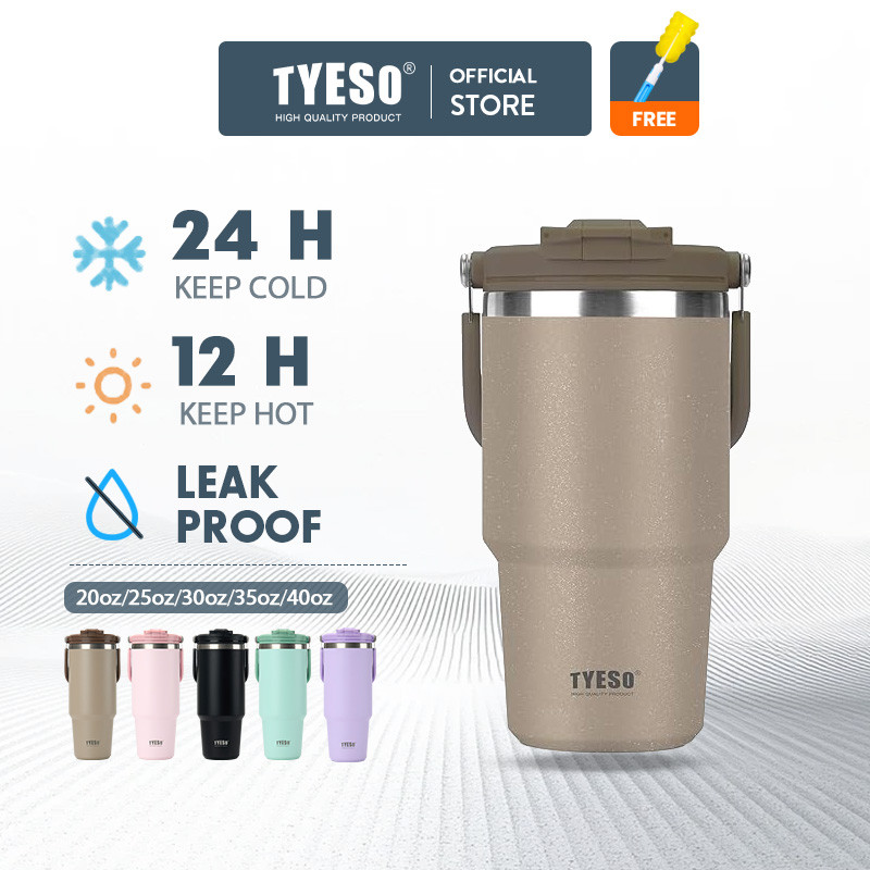 TYESO® New Vacuum Insulated Tumbler Upgraded Coffee Mug Hot And Cold Stainless Steel Water Bottle With Handle/Straw 33#C