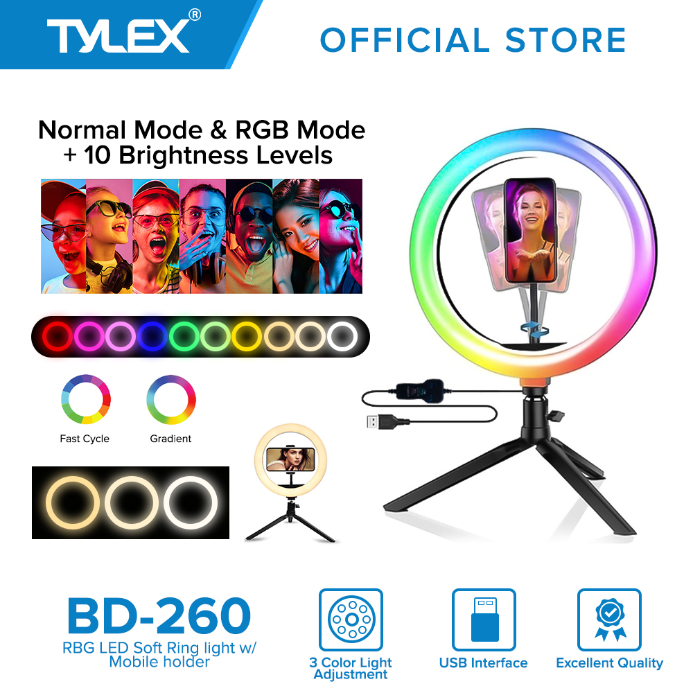 TYLEX BD-260 10" (26cm) RGB LED Soft Ring Light with Mobile Holder Dimmable Selfie Ring Light for Ph