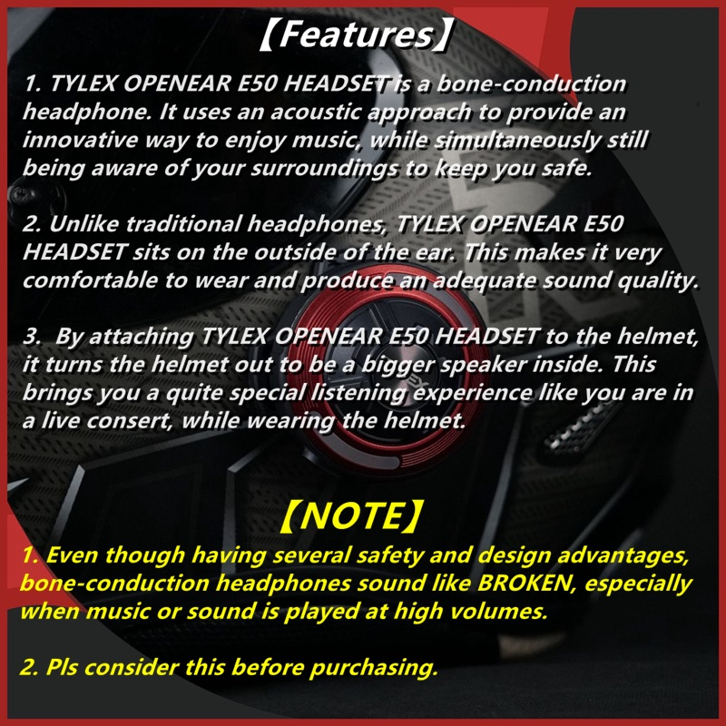 TYLEX OPENEAR E50 Motorcycle Helmet Bluetooth Headset Wireless Headphone Earphone With Microphone