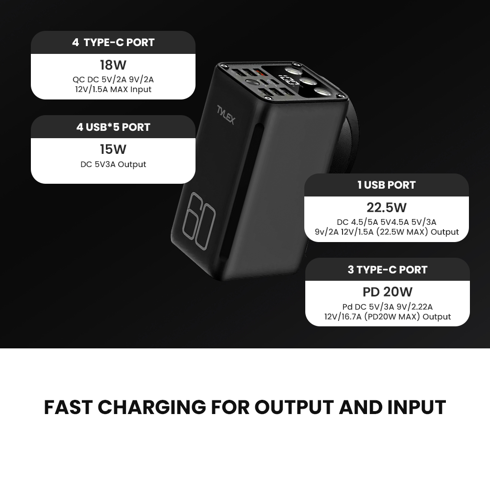 TYLEX XP06 Portable Super Fast Charge Power Bank 60000mAh PD QC VOOC With LED Indicator Flash Light