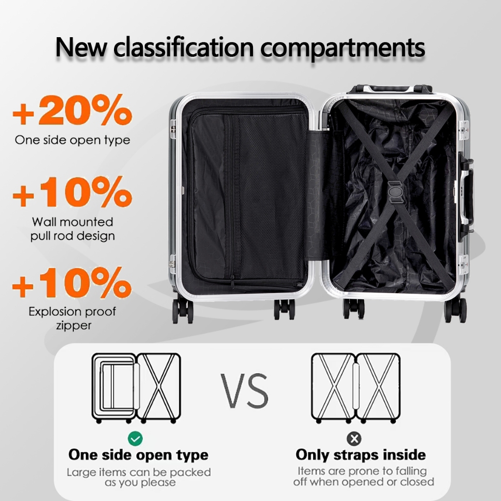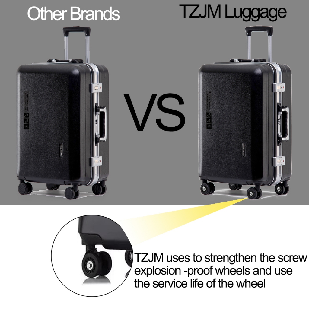 TZJM Aluminum Frame ABS+PC Luggage Travel Bag Reinforced Wheels Luggage Hard Case