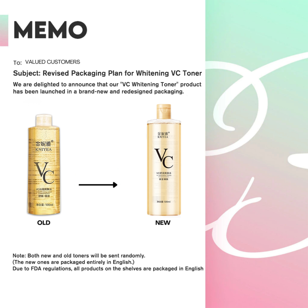 【KNIYEA Toner Set 】Pink VC Toner Highly Concentrated VC Essence Brightening Moisturizing 1000ml