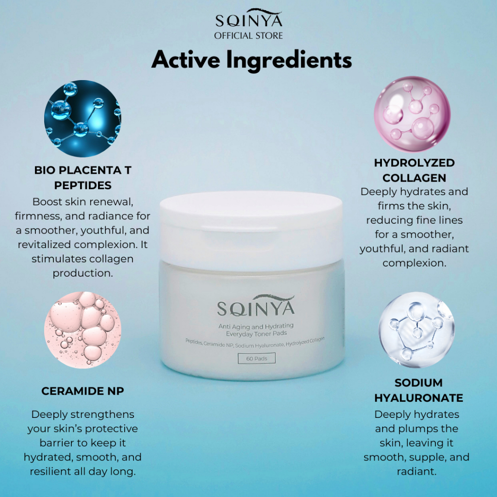 SQINYA Anti-Aging & Hydrating Everyday Toner Pads (Collagen, Peptide) Gentle for Sensitive Skin Type