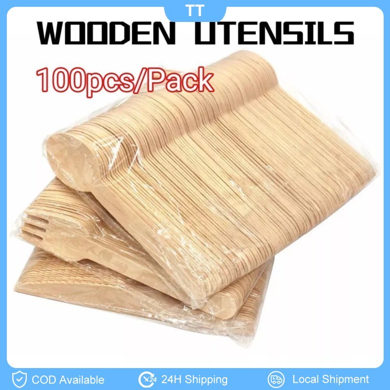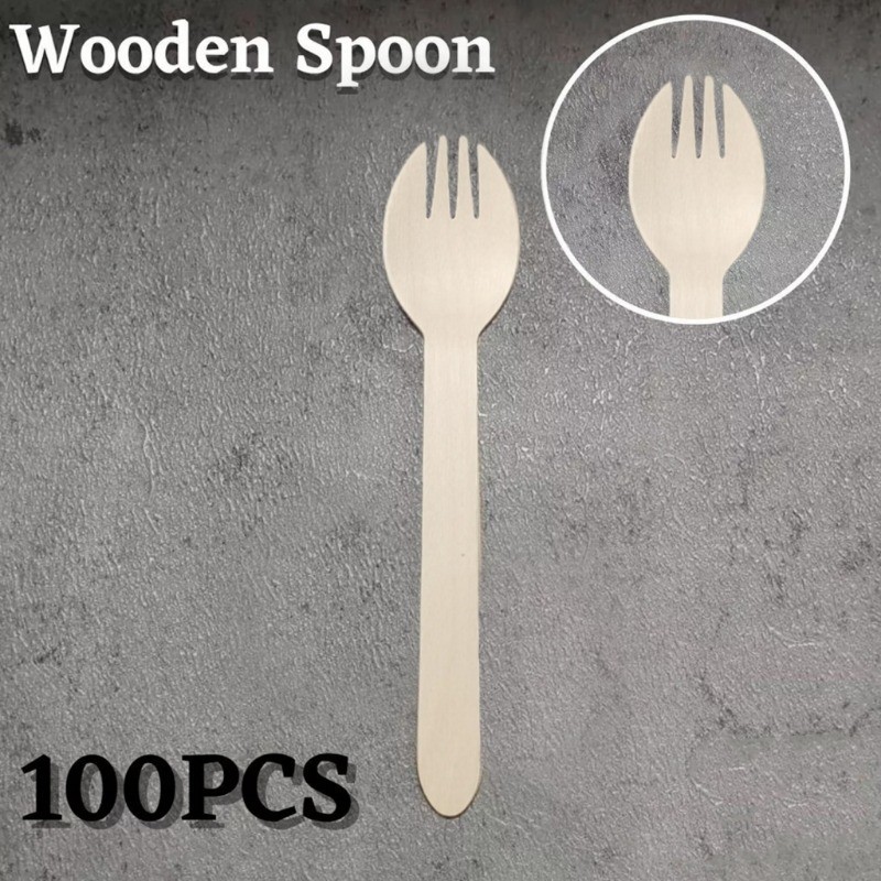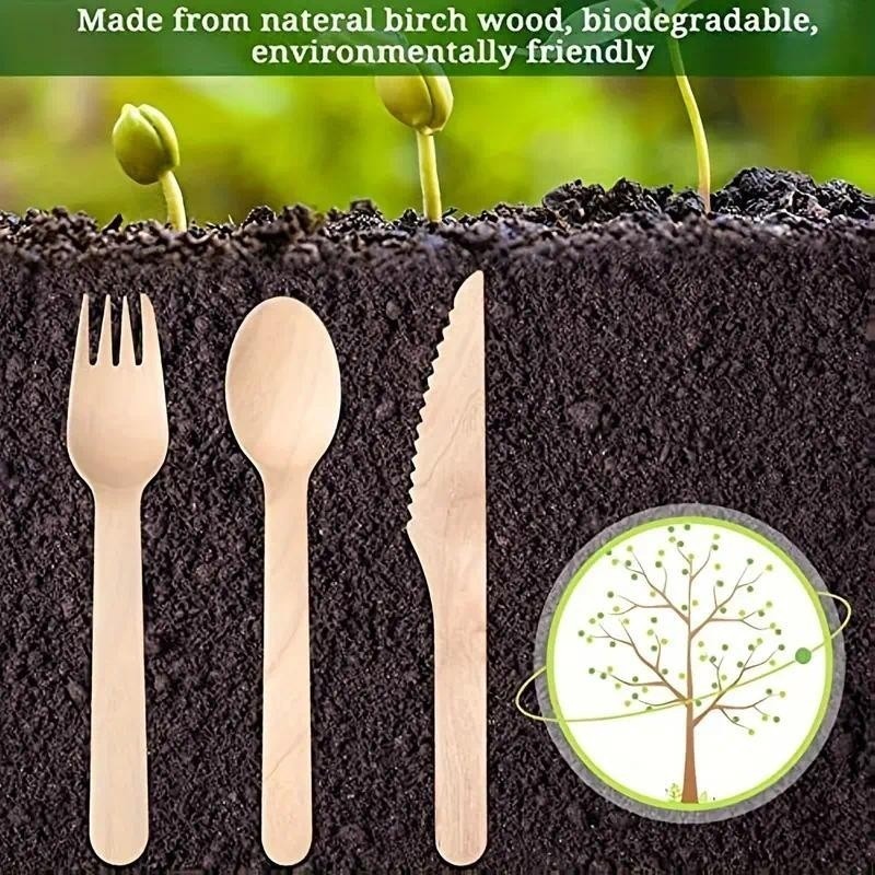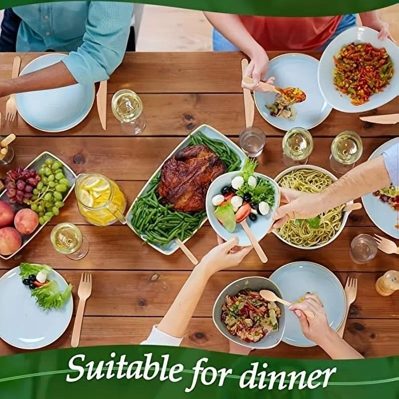 100PCS Wooden Spoon Fork and Knife Eco Friendly & Disposable For Party Camping Banquet Wedding