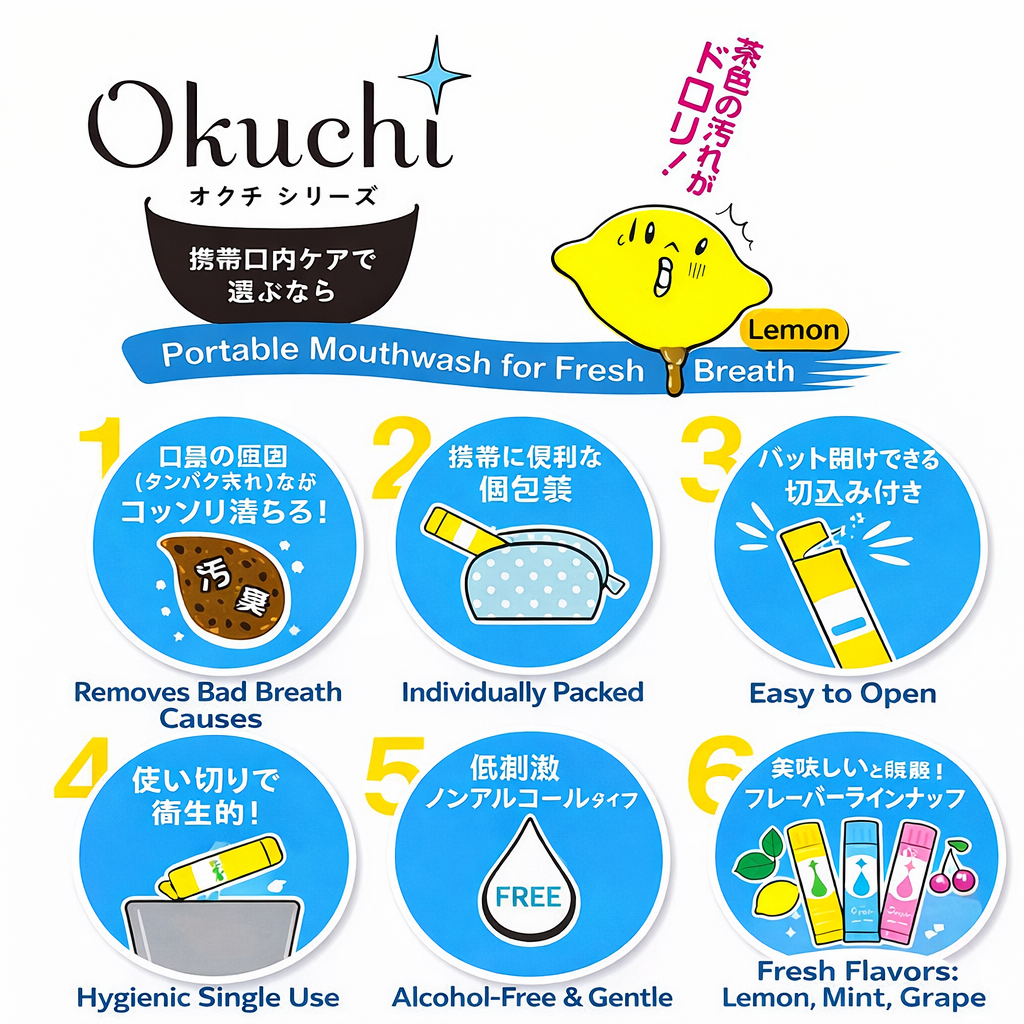 Okuchi Mouthwash|Bad Breath Care|See the Dirt|Lemon・Mint・Peach|Fast Shipping from Japan