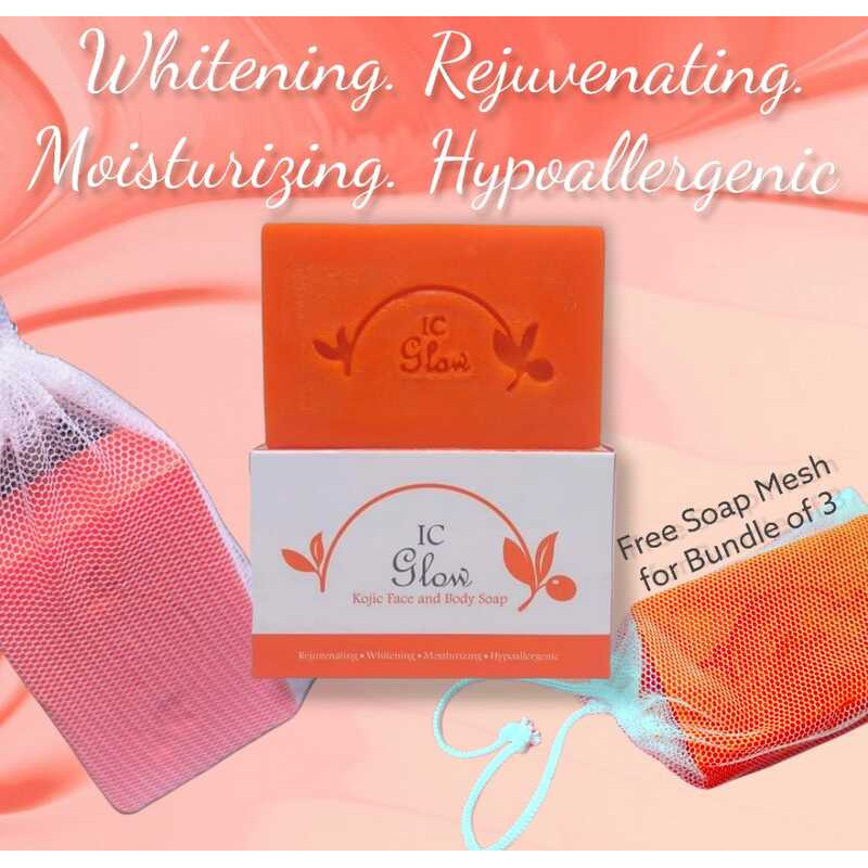 IC GLOW KOJIC SOAP BUNDLE OF 3 Whitening, Hypoallergenic, Rejuvenating, Moisturizing, NON DRYING 197
