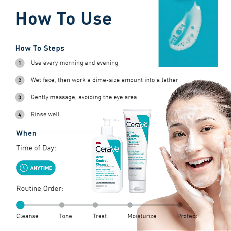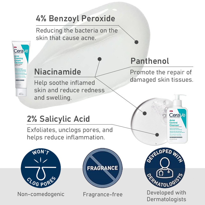 CeraVe Acne Control Cleanser & Acne Control Gel Acne Set For Acne Treatment Blackhead Removal