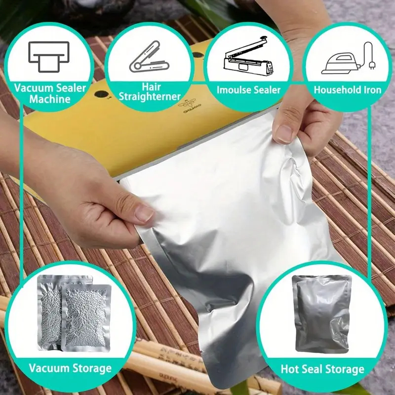 100Pcsc Heat Seal Bag Glossy Aluminum Foil Bag Food Grade Vacuum Pouch Foil Food Storage