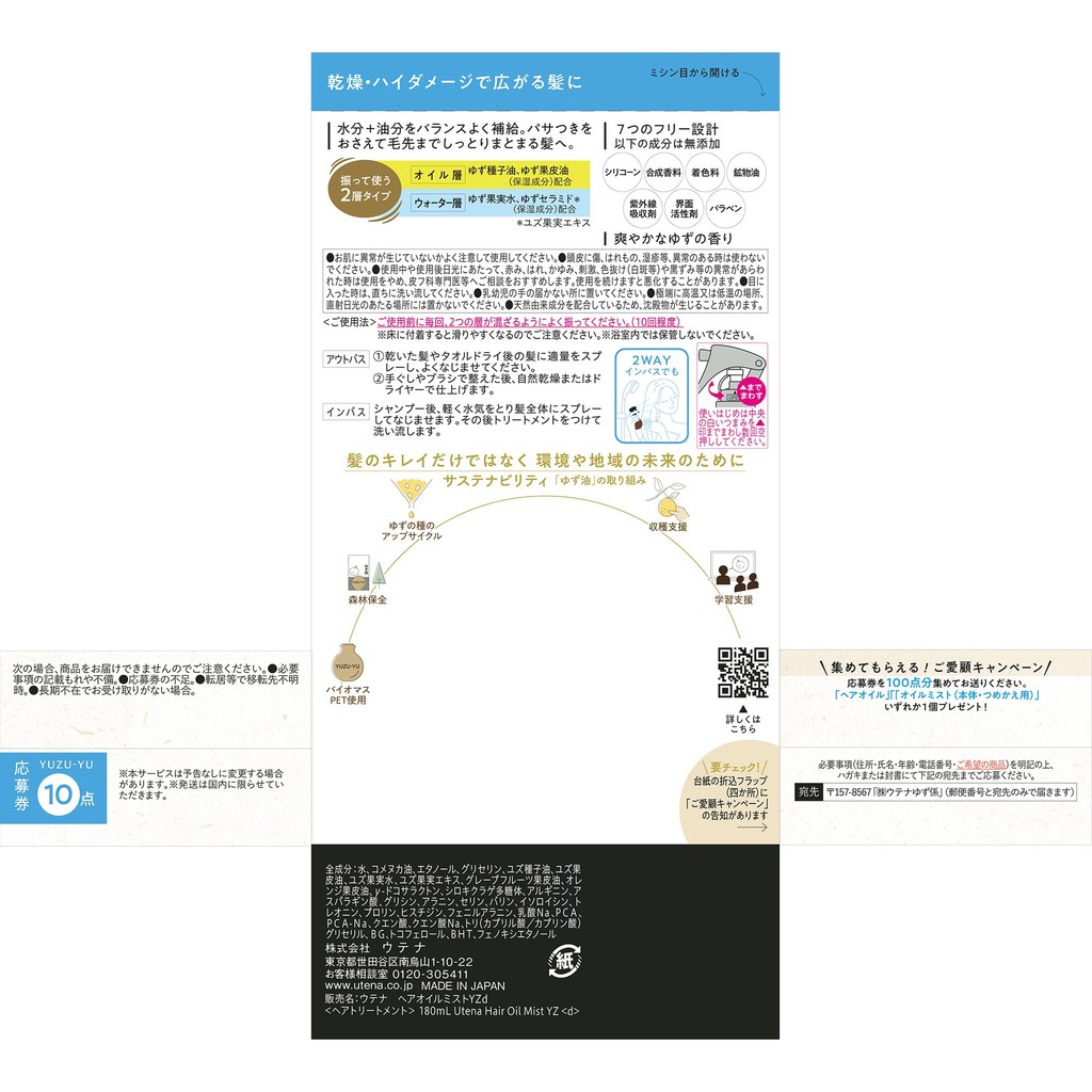 Utena Yuzu Oil Additive-free Oil Mist 180mL