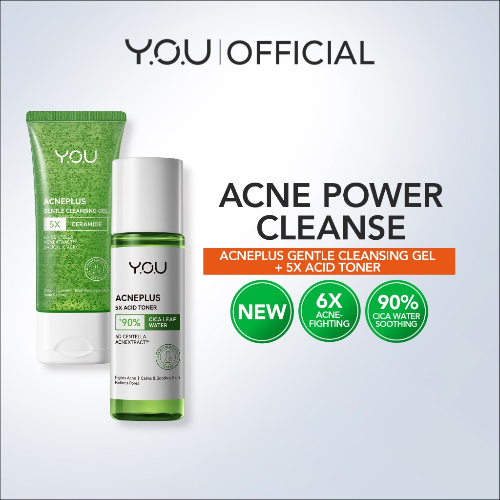 [Acne Power Cleanse] Y.O.U AcnePlus Cleansing Gel 100g & Acneplus 5x Acid Toner | Acne Set
