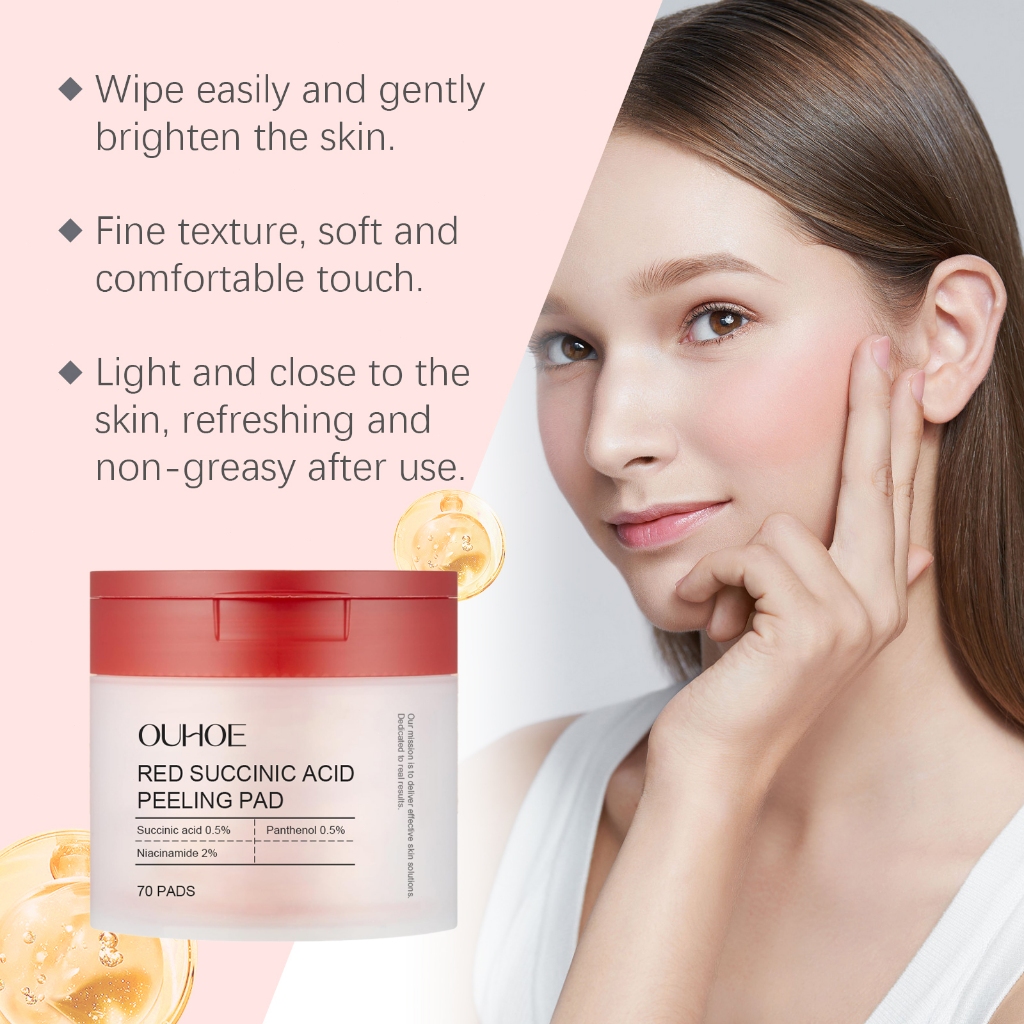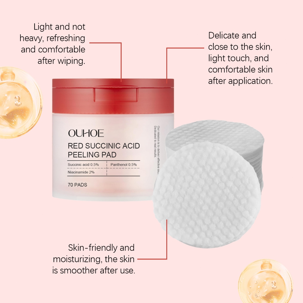 OUHOE Red Succinic Acid Peeling Pad 70Pcs Exfoliating Brightening & Acne Control Facial Toner Pads