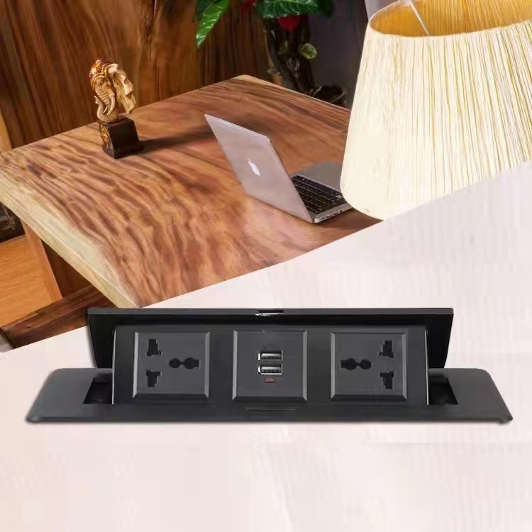Table Pop Up Socket Dual USB Power Outlet Strip Hub Connection Box 220V J29 for Home Office