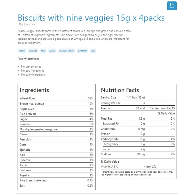 Peachy%b=Biscuits.X:with Nine Veggies 15g xYZ-4packs-X<(12m+)