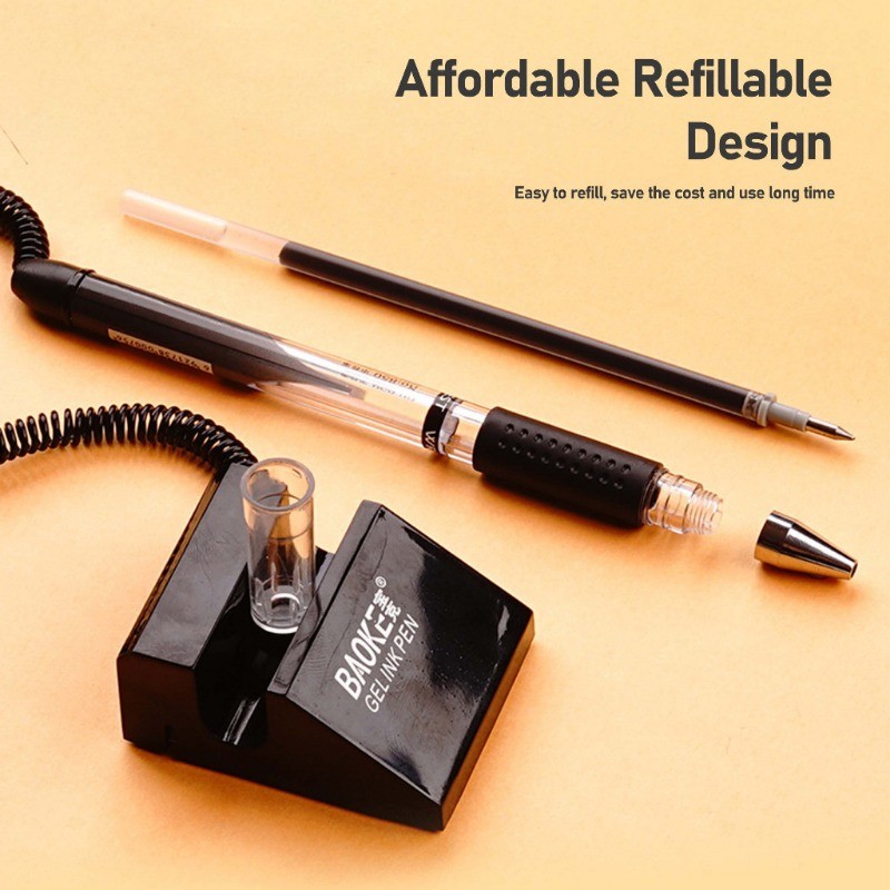 Table Top Pen Black Counter Pen with String Wire Stand Office Bank Stationery Desk Gel Ballpoint Pen