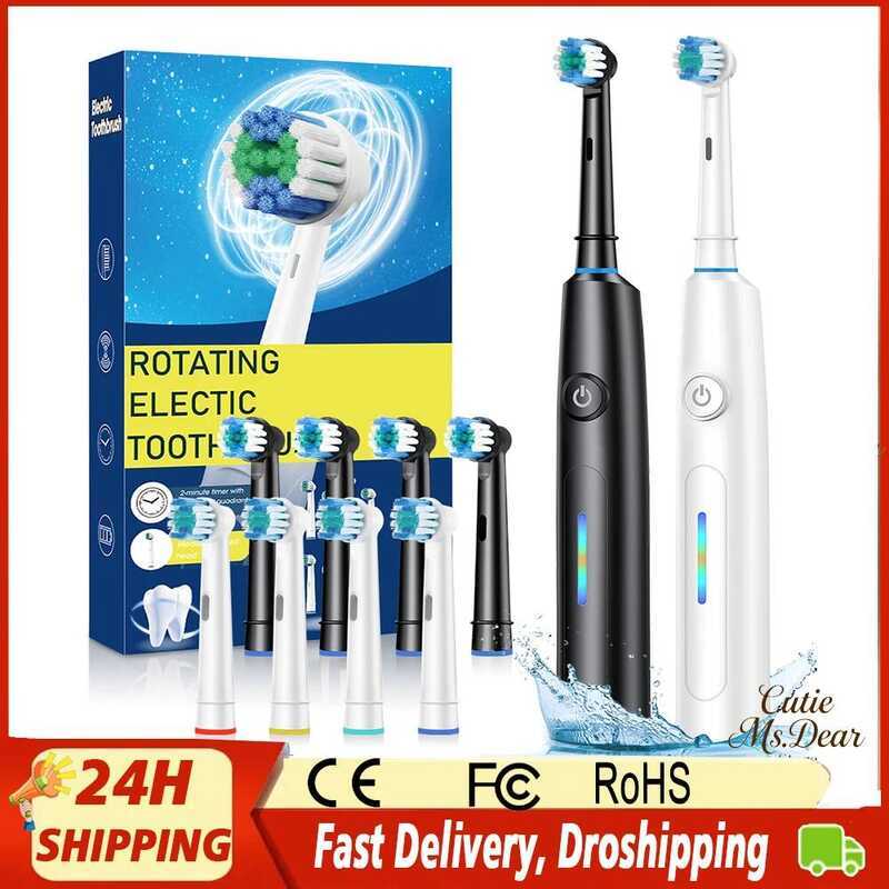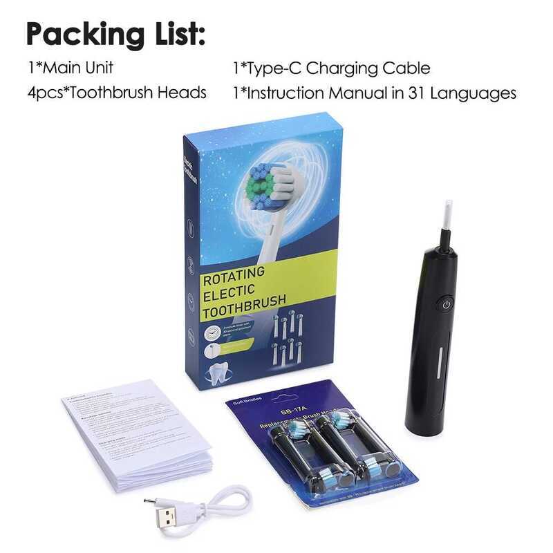 2-Minute Smart Rotating Electric Toothbrush Deep Clean Whitening Teeth with 4 Brush Heads with 5