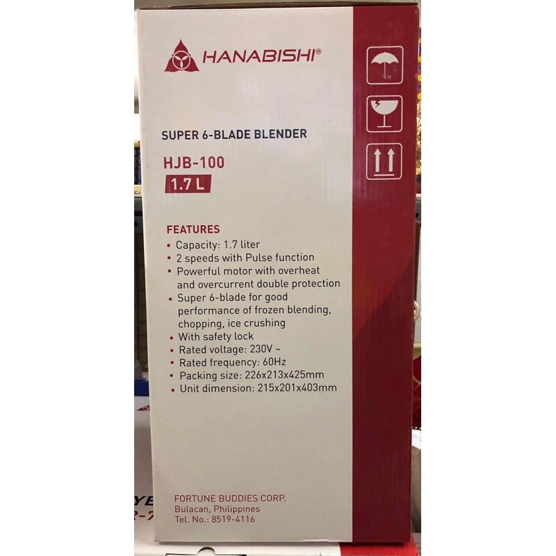 Hanabishi Super 6-Blade Blender HJB-100 1.7Liters HJB100 with safety lock