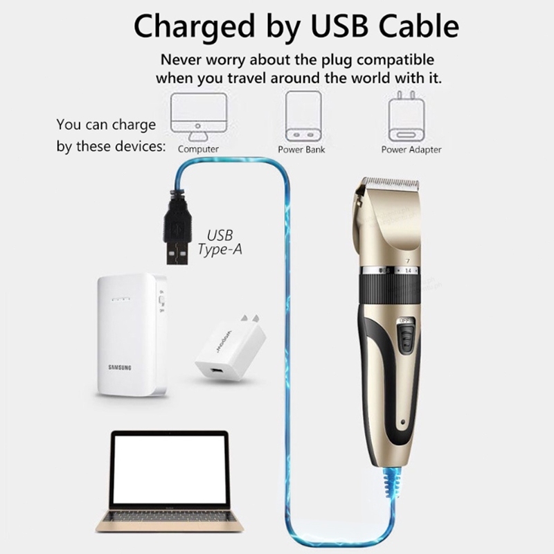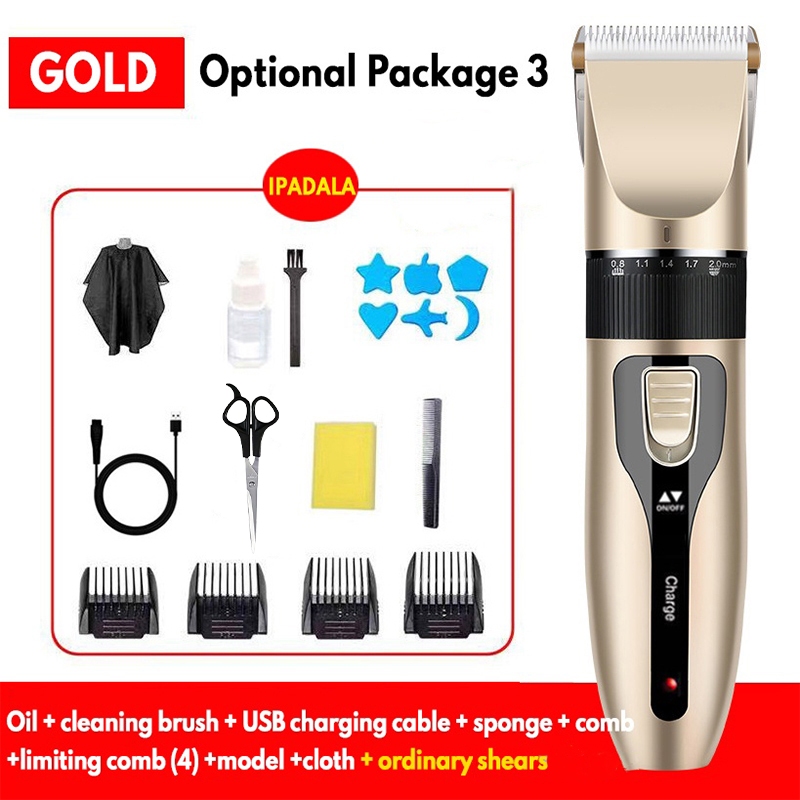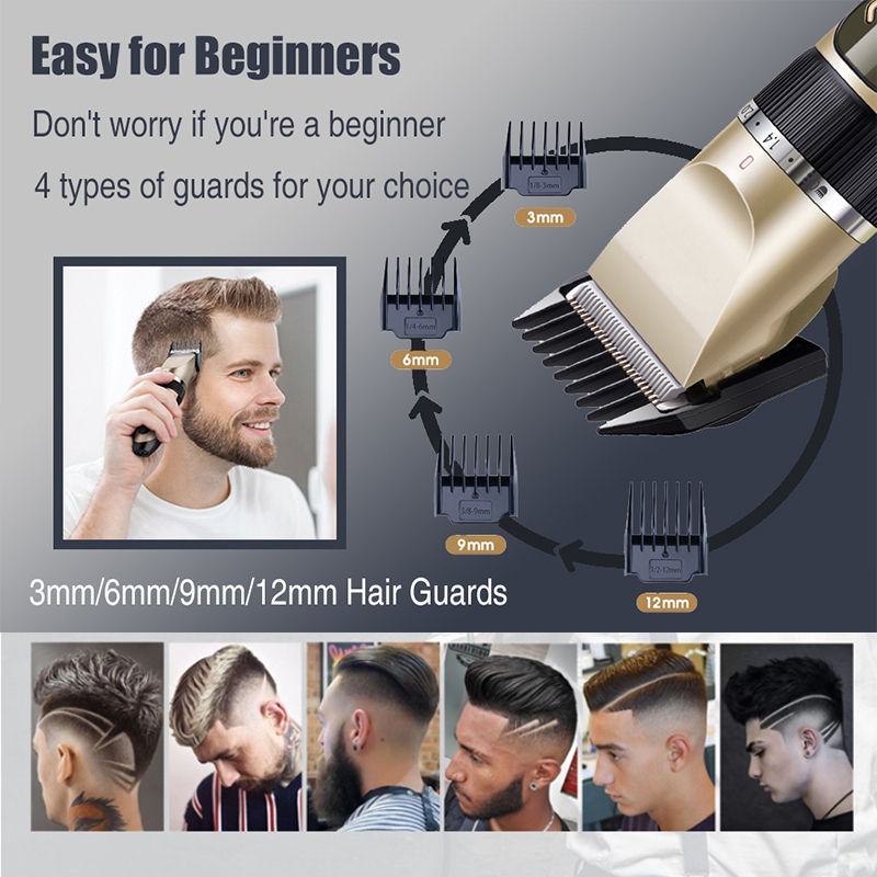 Professional Hair Clippers Rechargeable Haircut Razor Trimmer Cordless with Free Haircut Set Golden