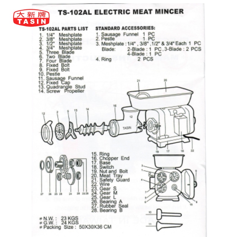 TASIN/EXTREME Meat Grinder Fixed Cap TS102AL (Tasin spare parts) Original | Part No. 12