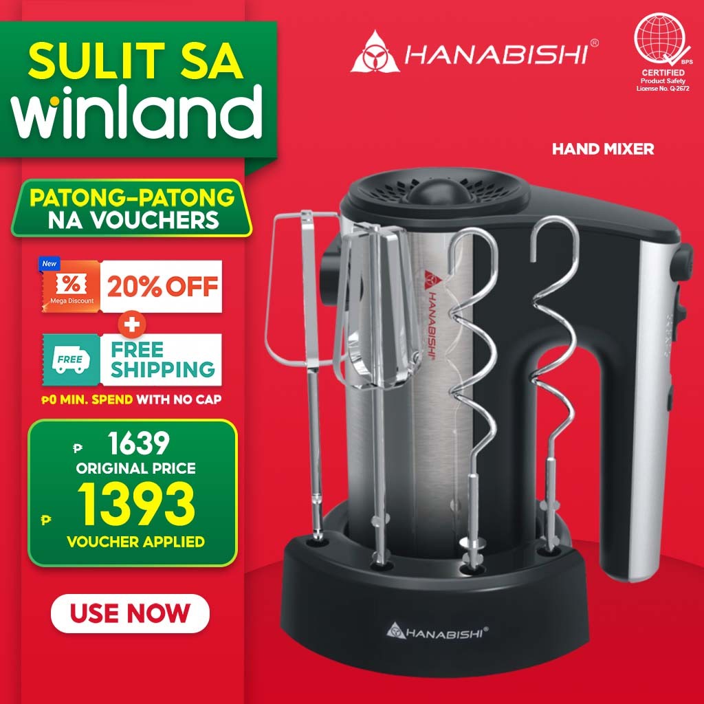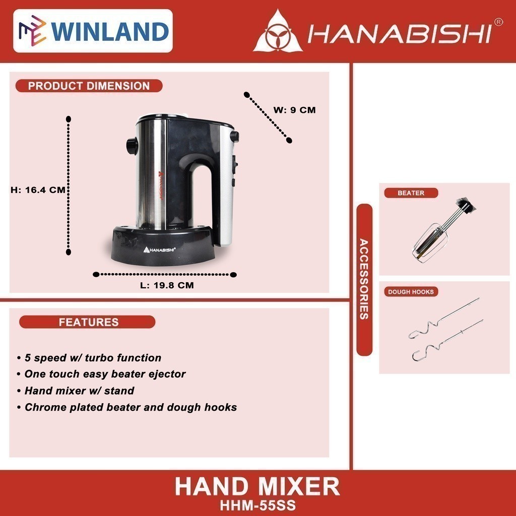 Hanabishi by Winland Chrome Plated Beater & Dough Hooks 5 Speed Hand Mixer HHM-55SS