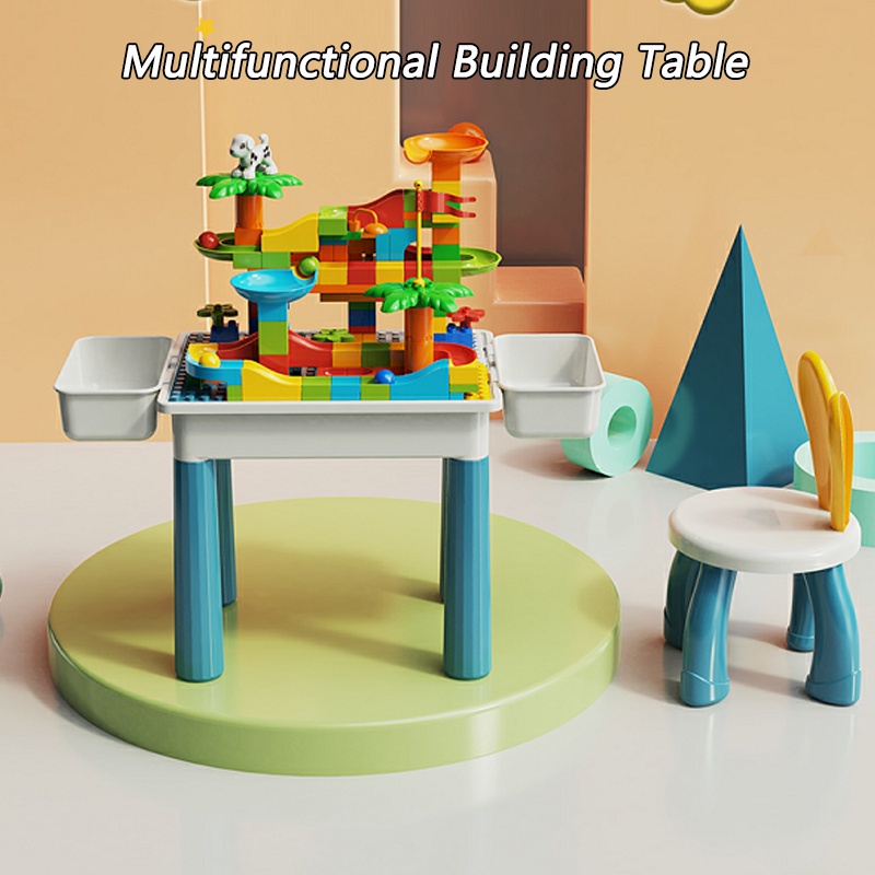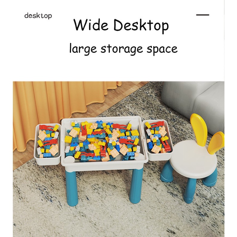 Table and Chair for Kids Study Table Multifunction Set Building Blocks Table with 2 Storage Boxes