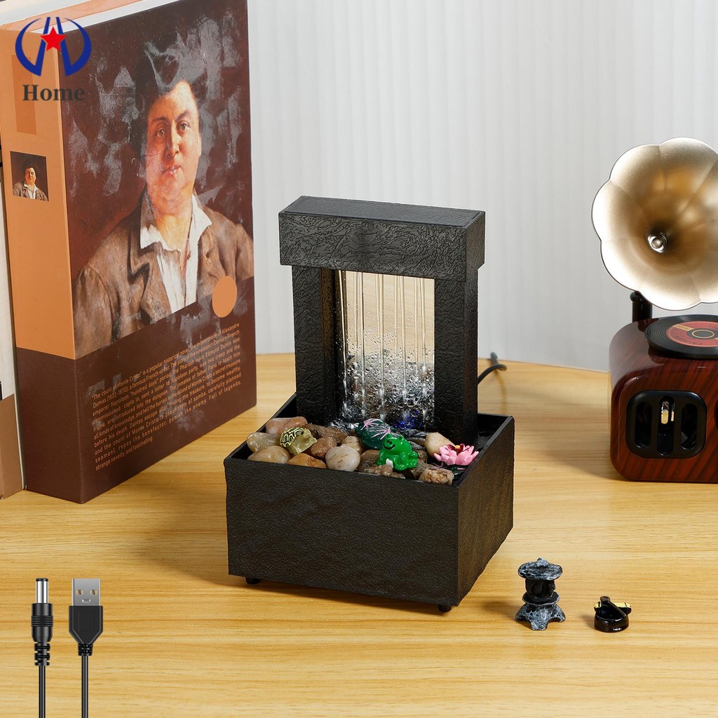 Tabletop Fountain Light Up Indoor Desktop Waterfall Fountain Battery/USB Operated Mini Water Fountain Feature Waterfall Decor SHOPSKC9320