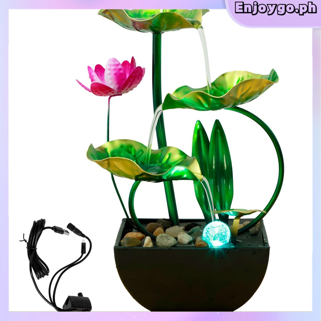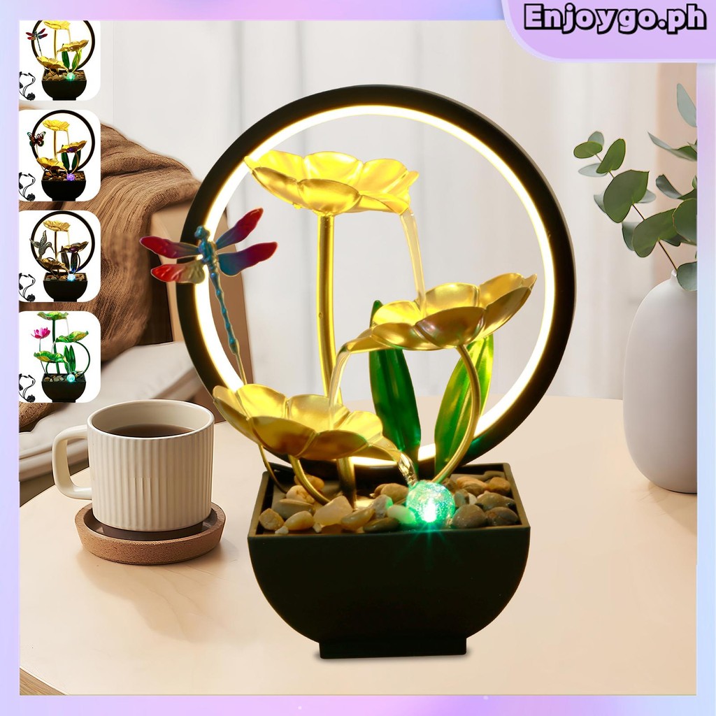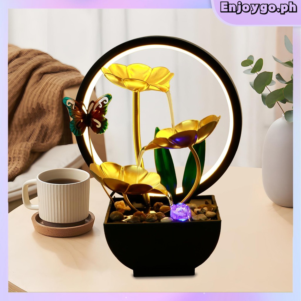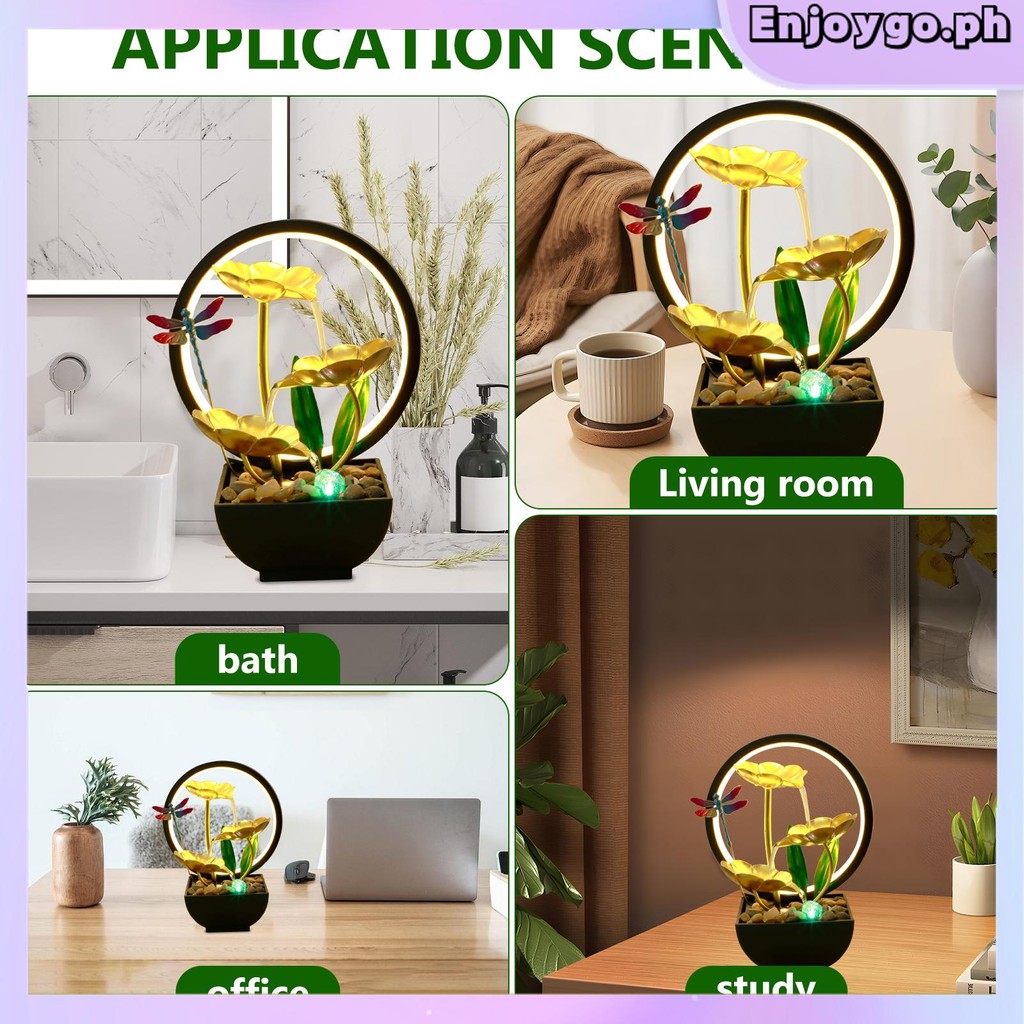 Tabletop Water Fountain USB Powered Tabletop Fountain with Natural Rocks and LED Ring Lights Tall Desktop Waterfall Fountain Zen Water Fountain Indoor Tabletop SHOPSKC7368