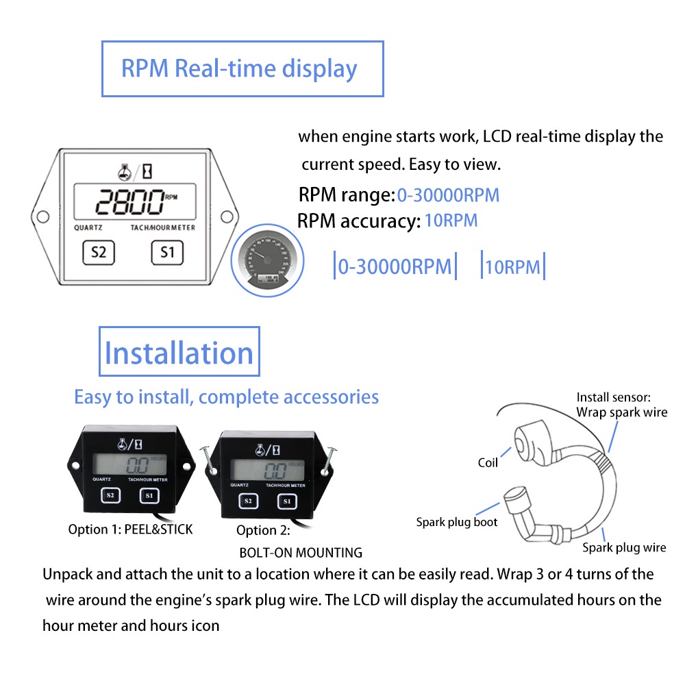 Tach Hour Meter Digital Tachometer Digital Engine Tachometer Gauge Inductive Rpm Meter