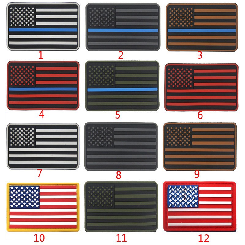 Tactical MILITIA Police law enforcement Thin Blue Line American US Flag Patch PVC multicam patch badge applique
