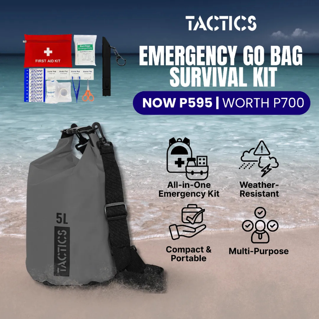 Tactics Bundle 5L Gray Ultra Waterproof Dry Bag + Emergency Go Bag Survival Kit - Outdoor Adventure