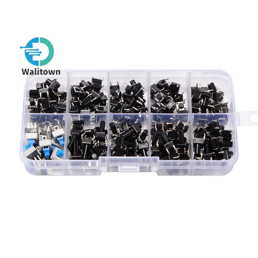 Tactile Push Button Switch Micro Momentary Tact Assortment Kit 180 pcs 6mm Micro Switches with Storage Case