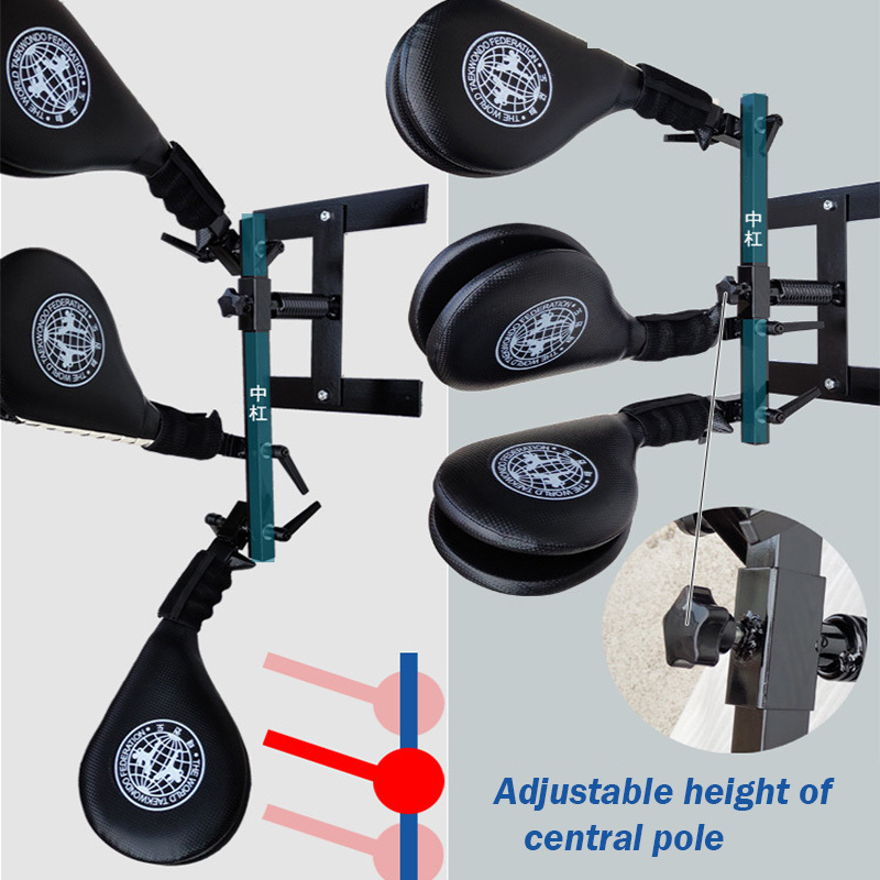 Taekwondo Boxing Kicking Practice Kit on Wall with Kick Pads Feet Power and Stand Mounted on Wall In