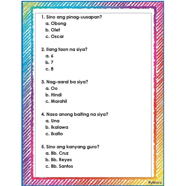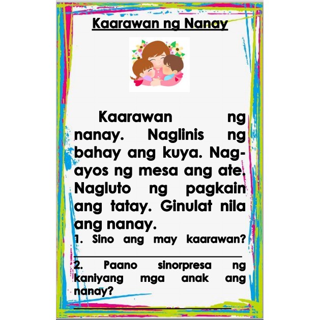 Tagalog Filipino reading and comprehension Printed Worksheet