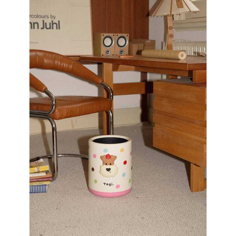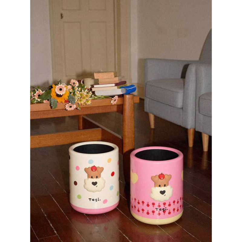 Tagi. "Popcorn" Polka Dot Flower Household Large Capacity Double Layer Storage Tube Cute Trash Can