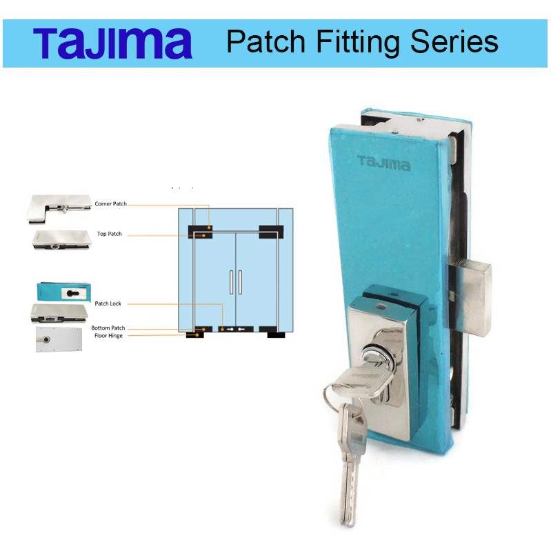 Tajima Glass Door Bottom Patch Lock Fitting (Stainless Steel)