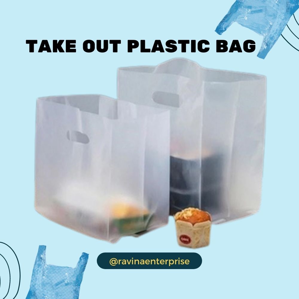 Take Out Plastic Bag | Plastic Carrier Bags with Handle | For Pastry Box and Food Trays