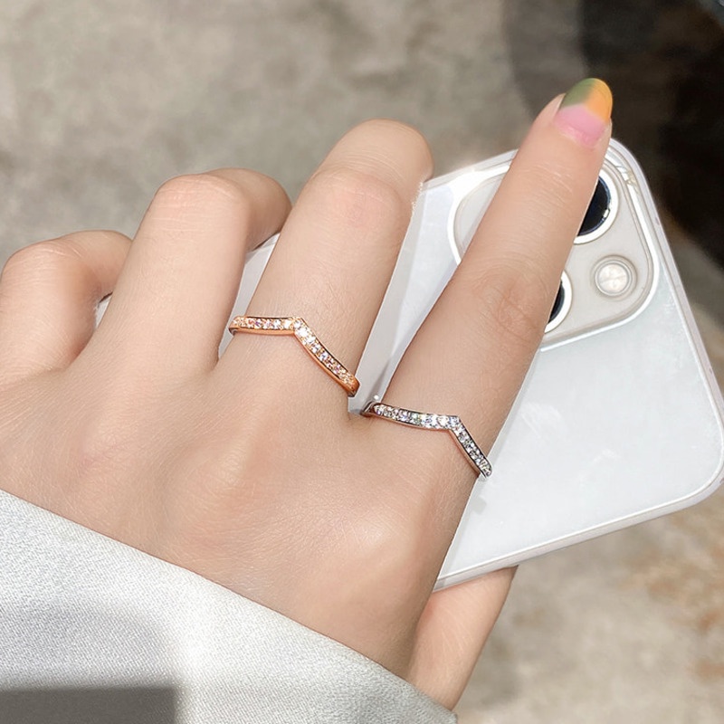Tala by Kyla Soljiwan Inspired Promise Ring Fuji Ring V Shape Titanium Ring With Zircon Anti-Character Flat Jewelry Pandor* V Ring