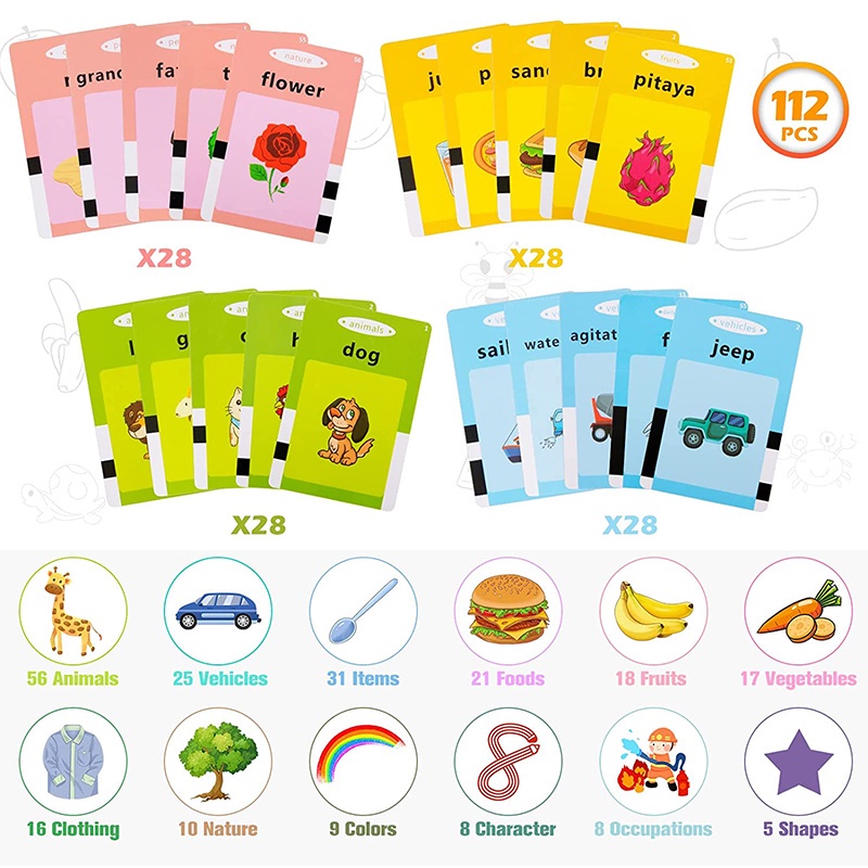 Talking Flash Cards ABC Alphabets Learning Educational Toys Reading Machine with 224 Words Preschool Interactive Learning Toys for Kids Boys Girls 2 3 4 5 6 Year Old