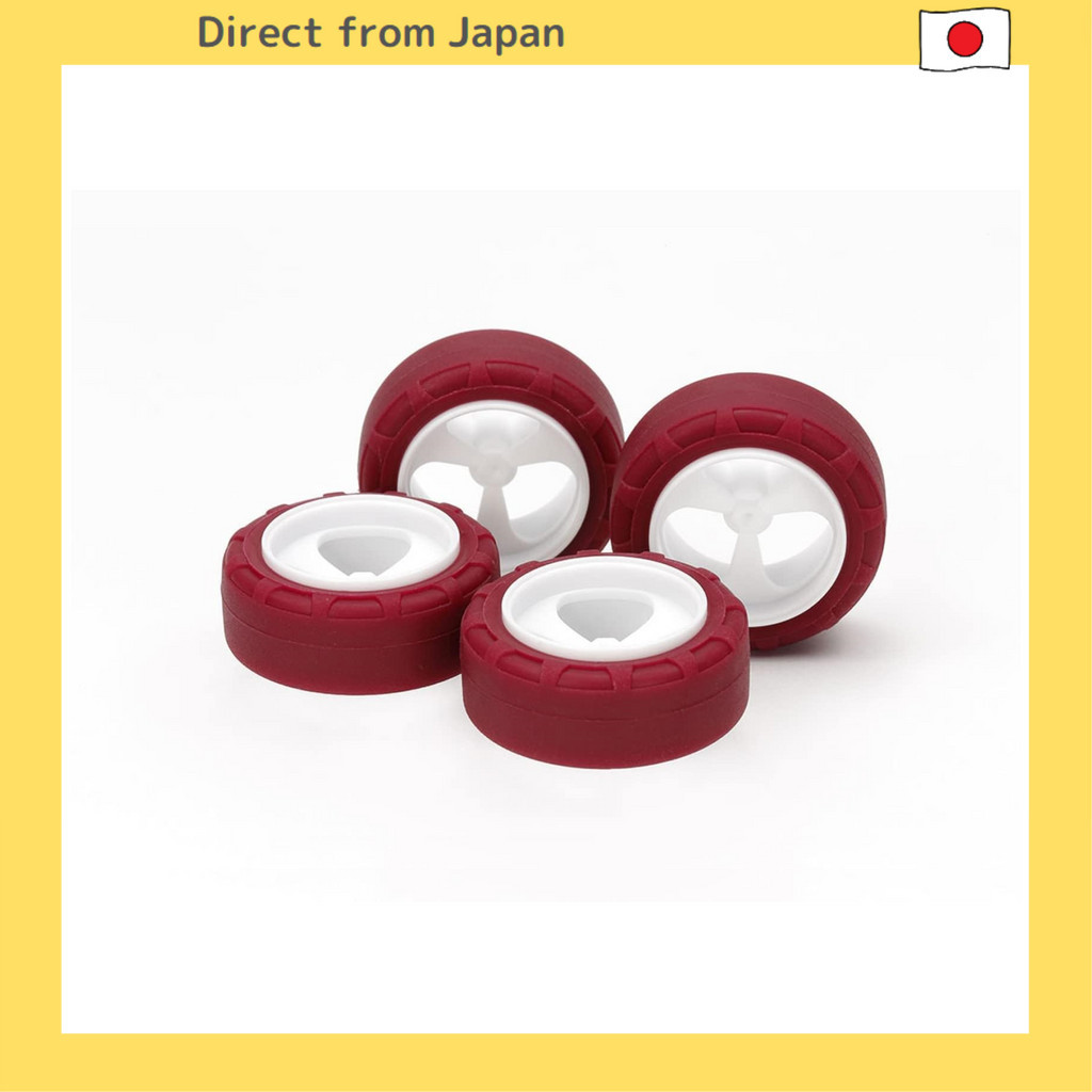 Tamiya Mini 4WD Special Project Low Friction Small Diameter Low Tire (24mm) & 3 Spoke Wheels 95634 White/Maroon
