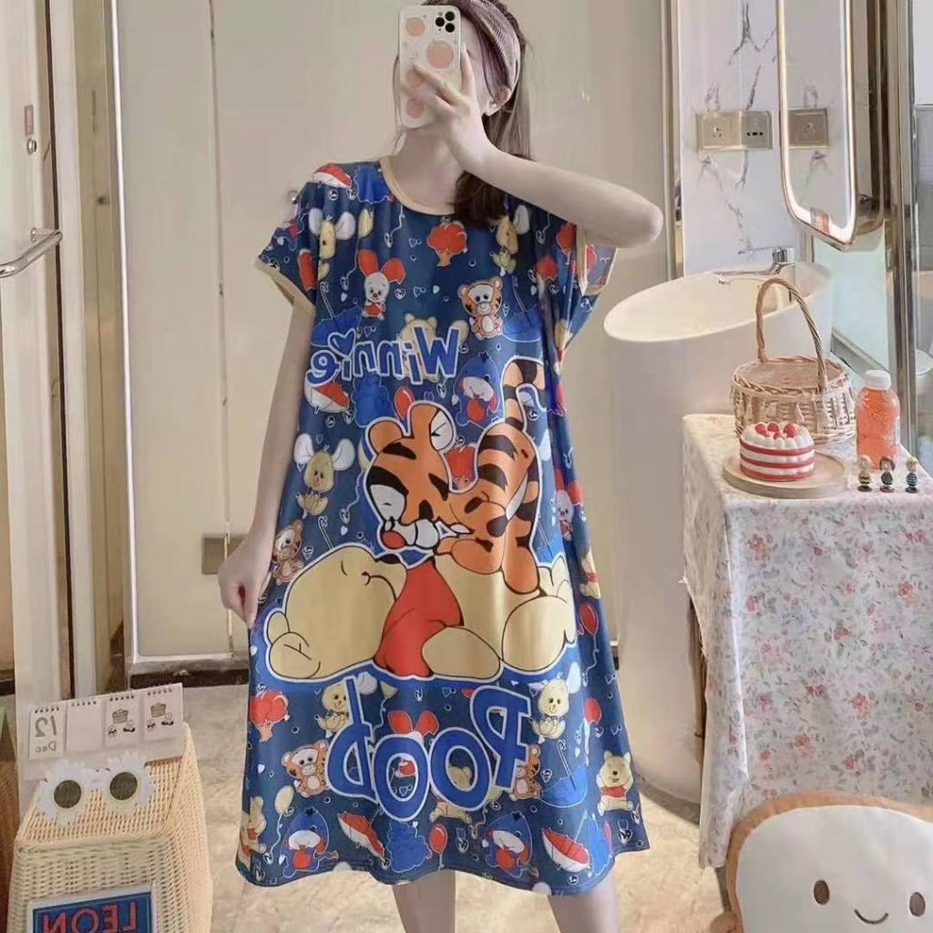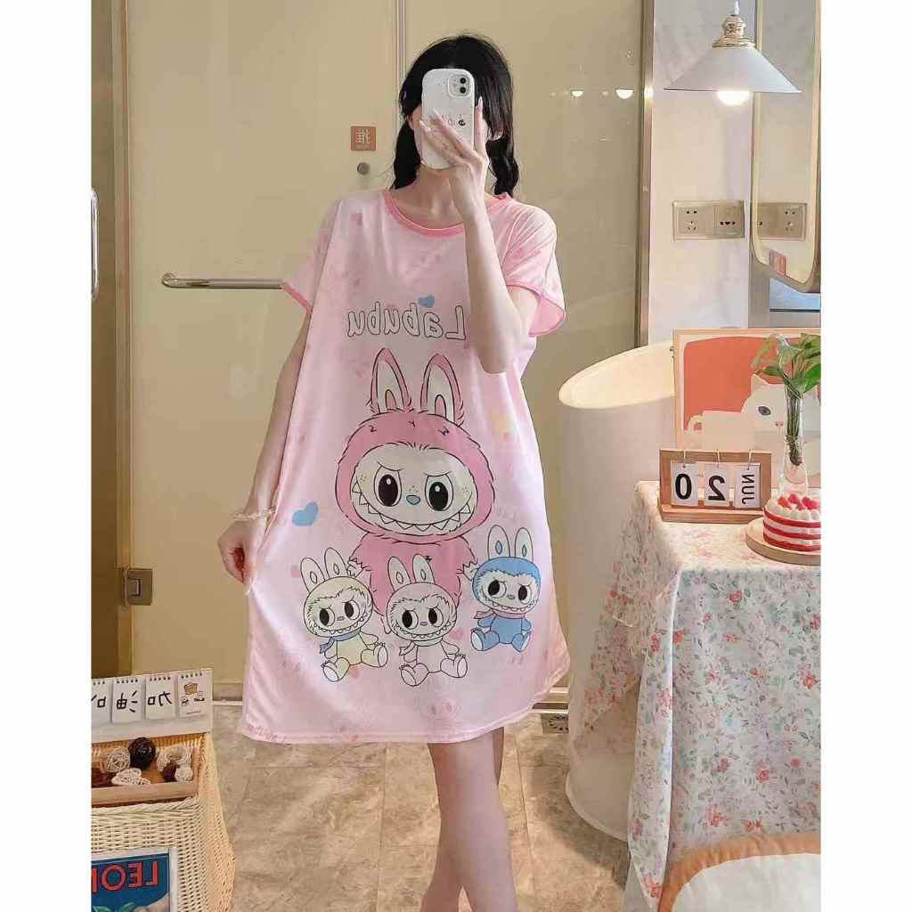 Korean Night Dress Sleepwear Nightgown Comfy Homewear for Women Lounge Dress