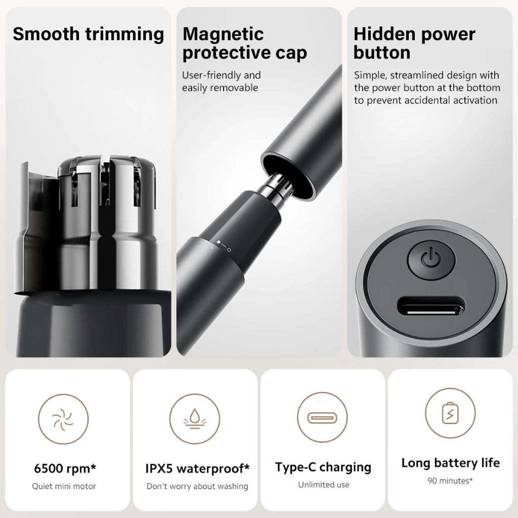 Xiaomi Nose Hair Trimmer Smooth Trimming Resistance Type-C Charging 6500 rpm Long Battery IPX5 Water