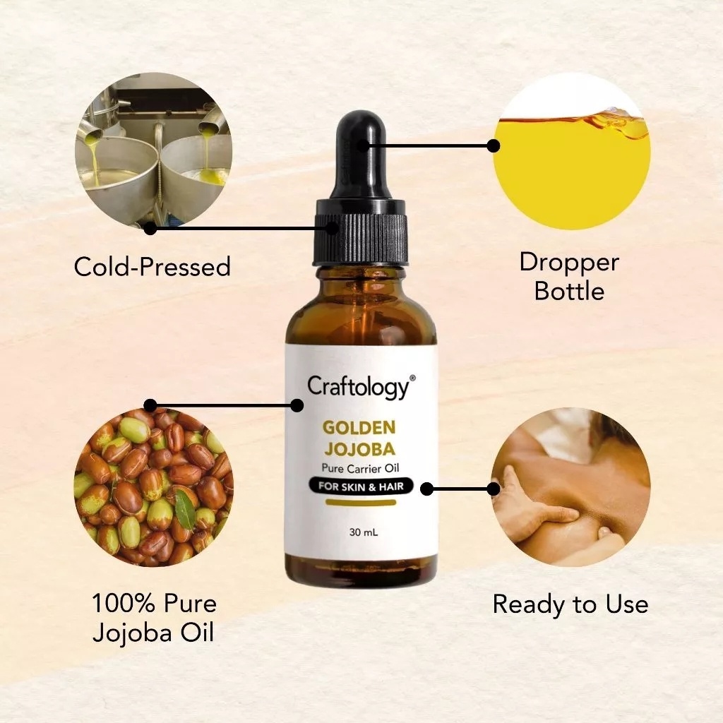 Jojoba Oil Golden Craftology® Glass Dropper Bottle Organic Pure Cold-Pressed (30mL)