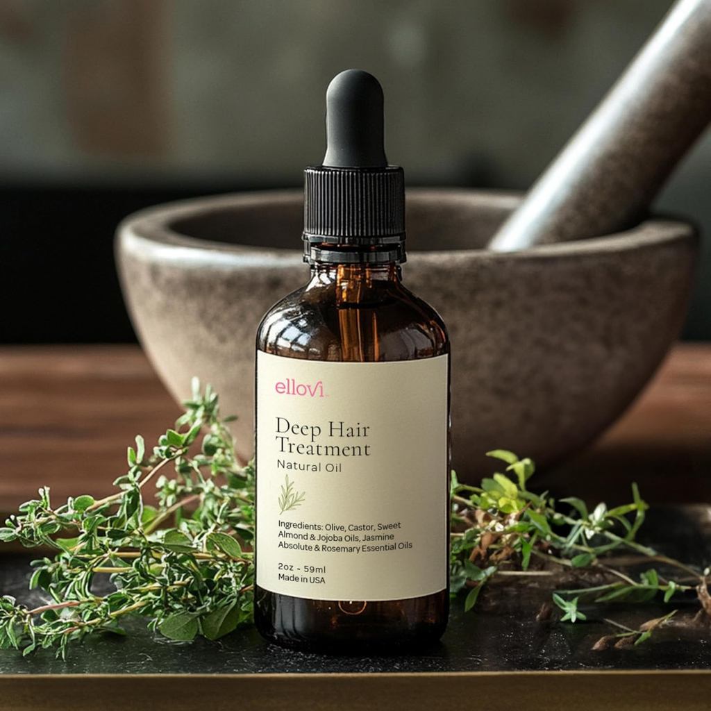 Ellovi Deep Hair Treatment Oil – 100% Natural Leave-In Hair Repair for Growth & Hydration – Castor, Jojoba, Almond & Rosemary Oils – Cold-Pressed Oils, Vegan. Frizz Control for All