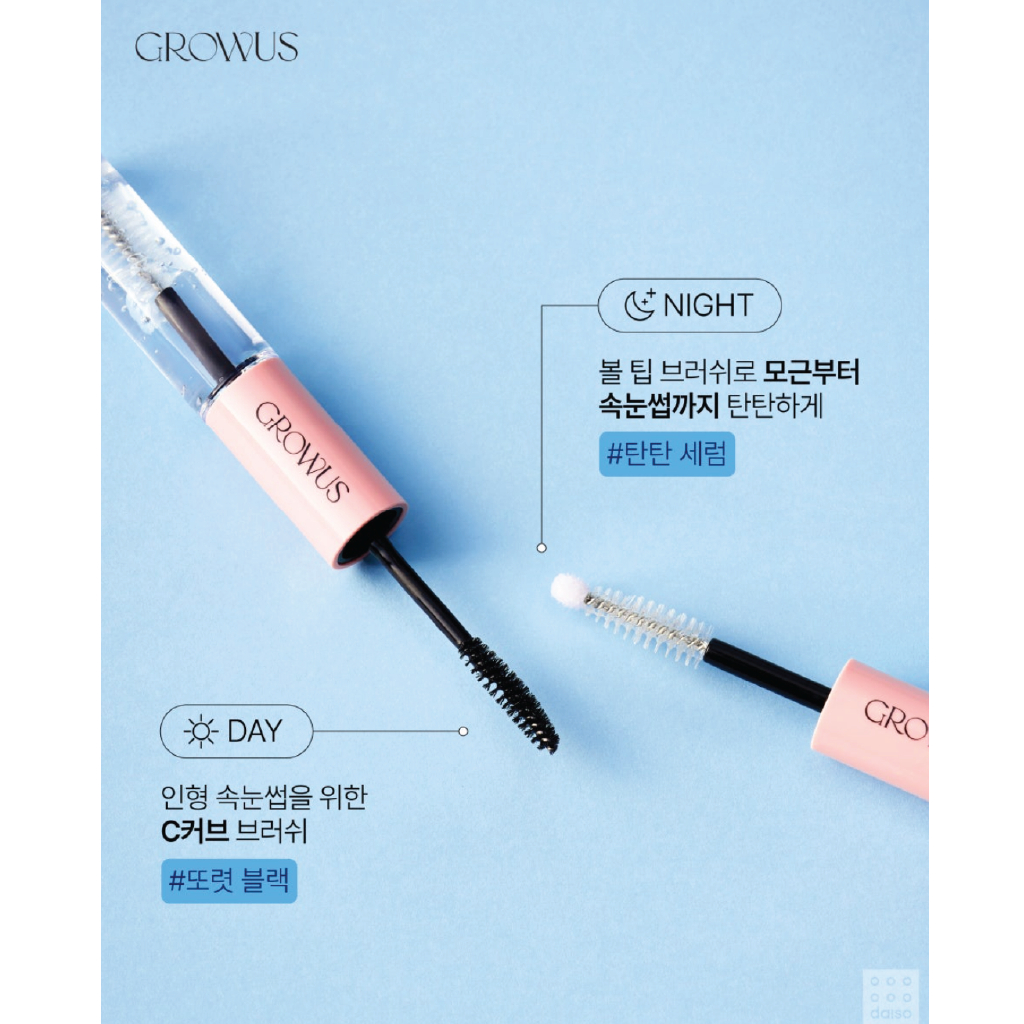 [Made in Korea] GROWUS x Diaso 7-in-1 Lash & Hair Styling Set|No-Wash Hair Balm|Fixing Stick|Hair Mascara|Lash Serum|For Damaged, Dry & Curly Hair