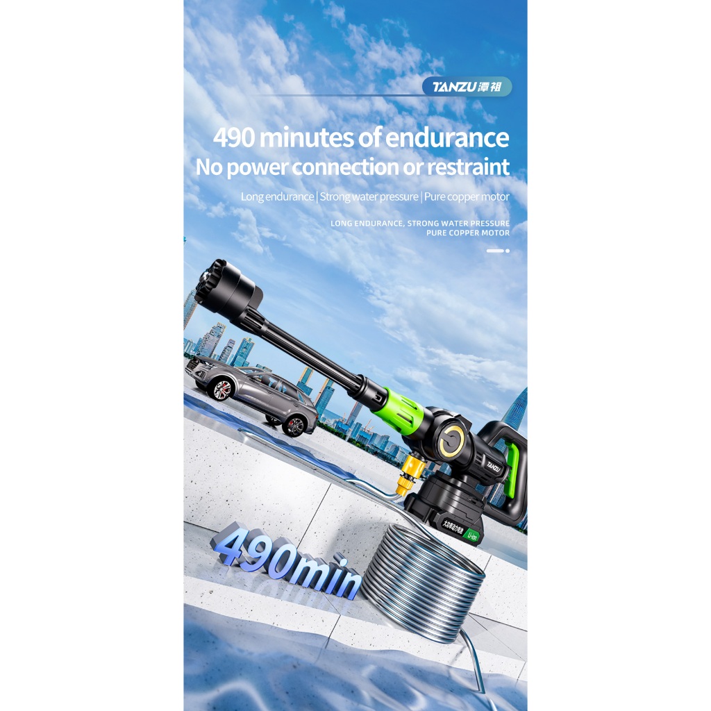 Tanzu Model-9 100 Bar Pressure Water Jet Cordless MT-21V Brushless Motor 3 Gears Cordless Water Jet