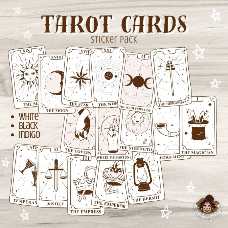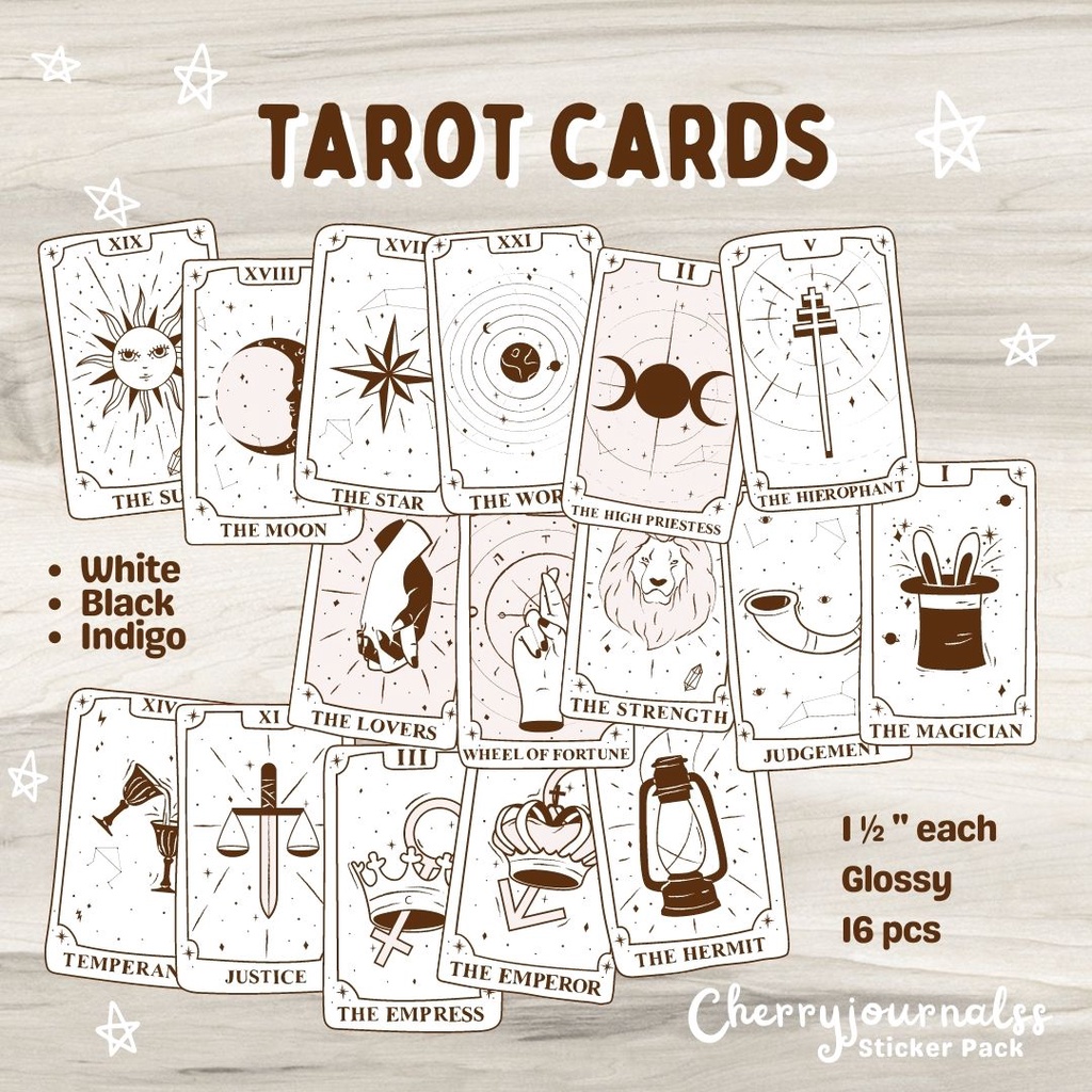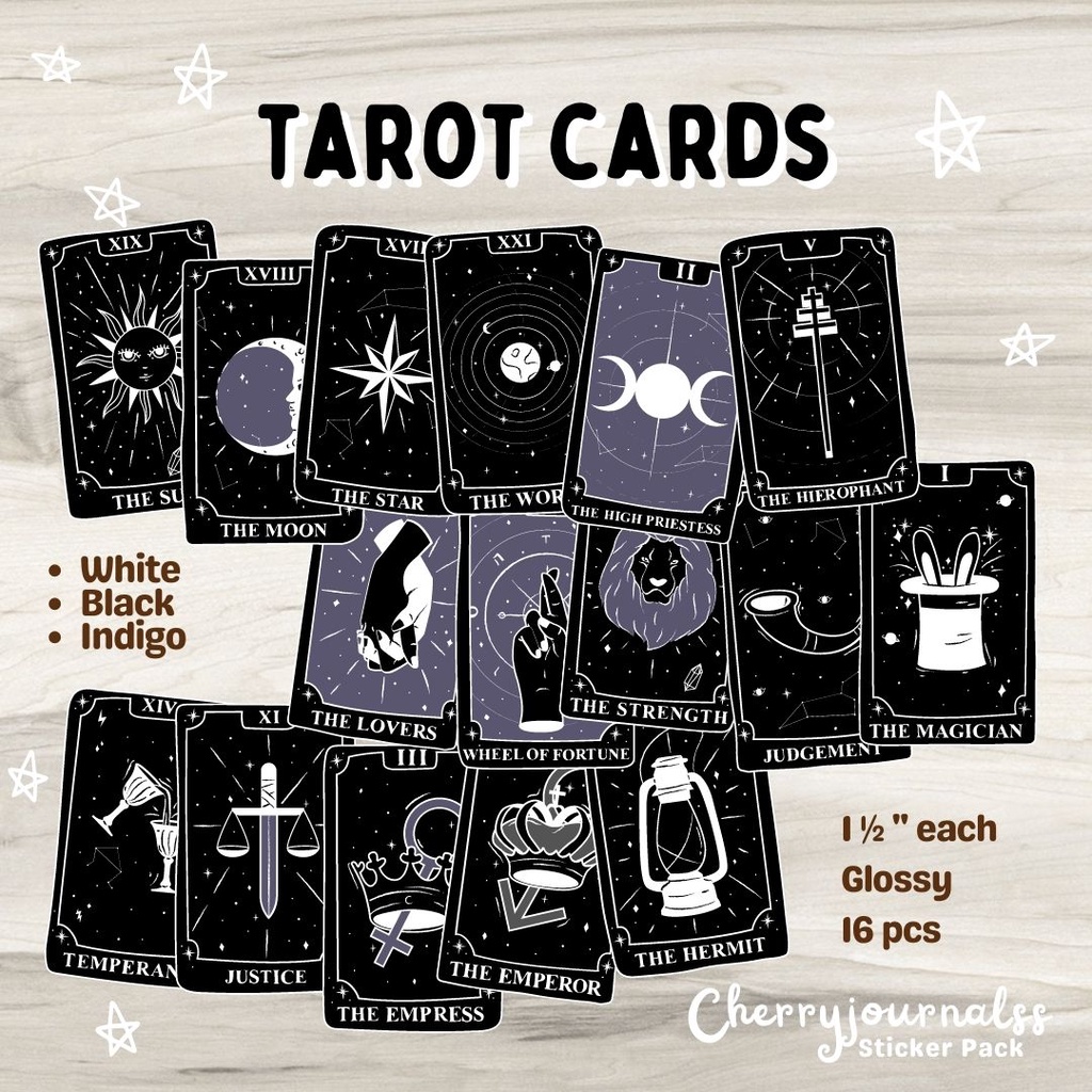 Tarot Cards Stickers 2 inches 16pcs Cute Sticker Pack for Journal Planner Bujo Scrapbook and Diary