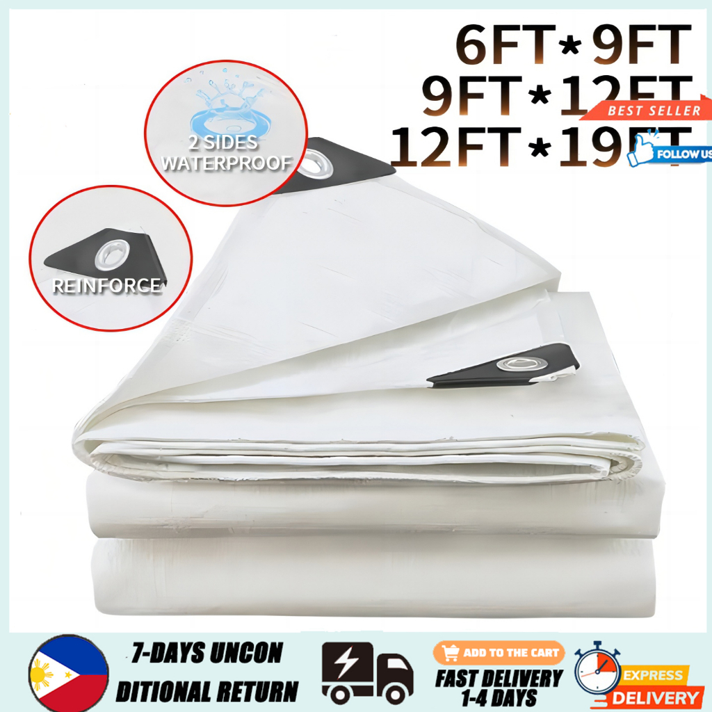 Tarpaulin Trapal Waterproof Makapal Size 9ft x 12ft Rain Cover White Truck cover Sun Shade Net