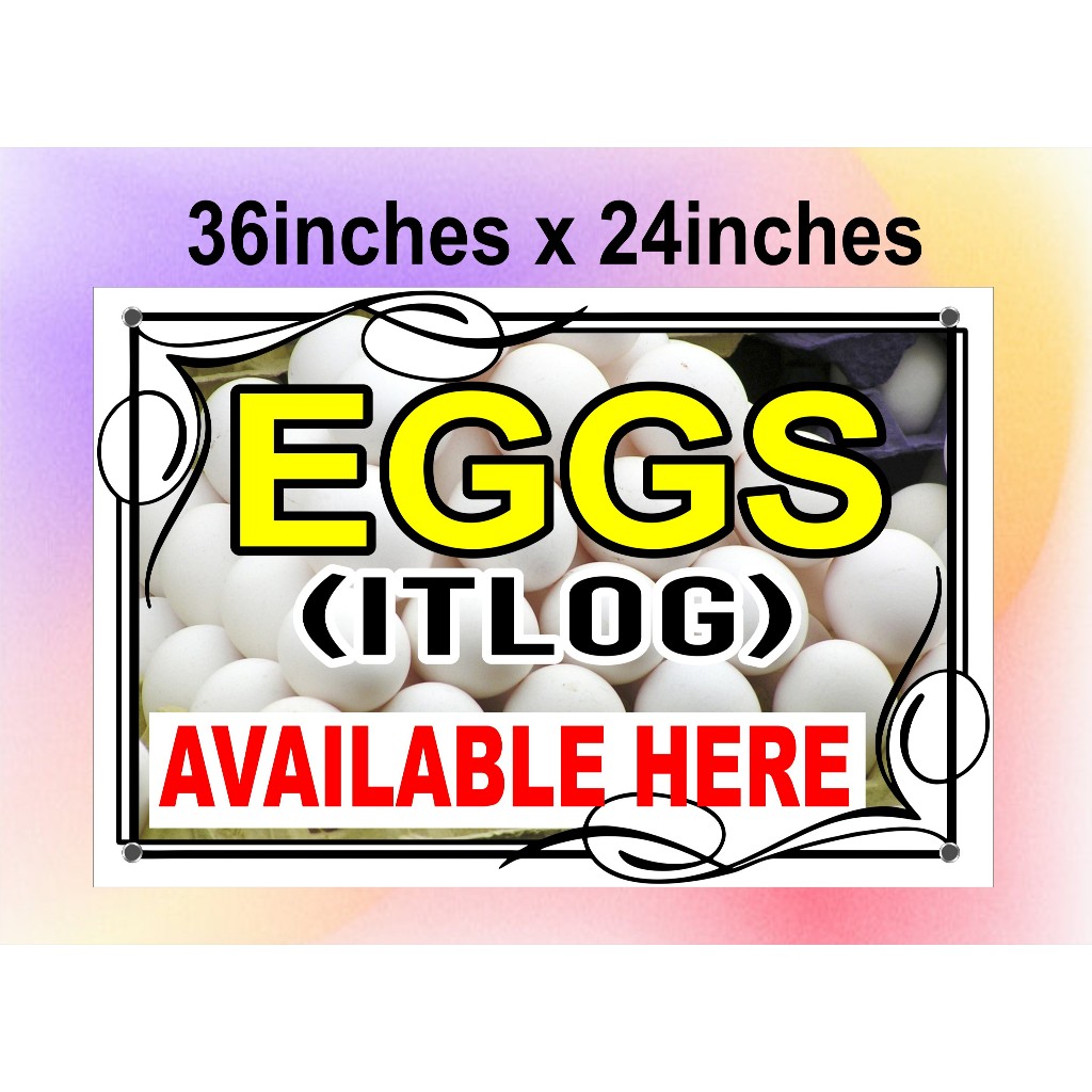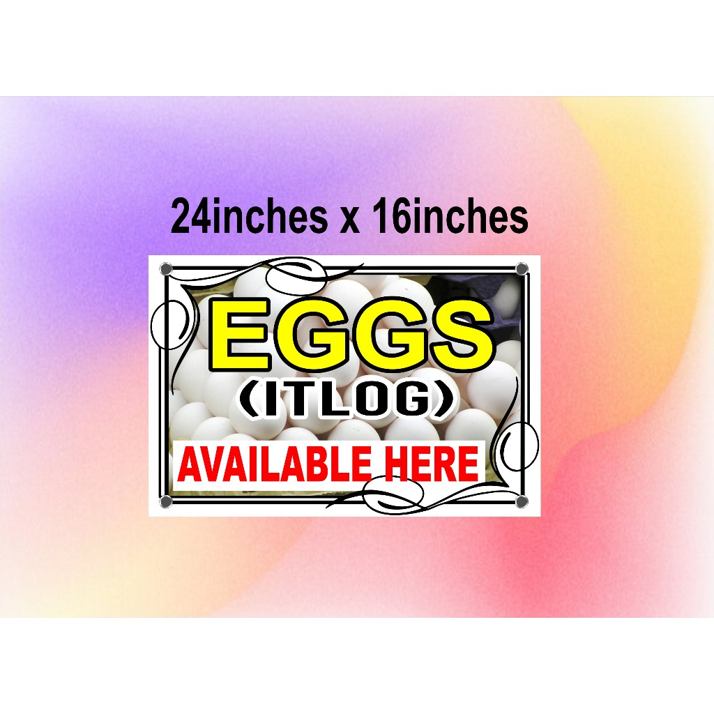 Tarpaulin signage for sari-sari store, Eggs available here sign, Tarp and A4 size Laminated
